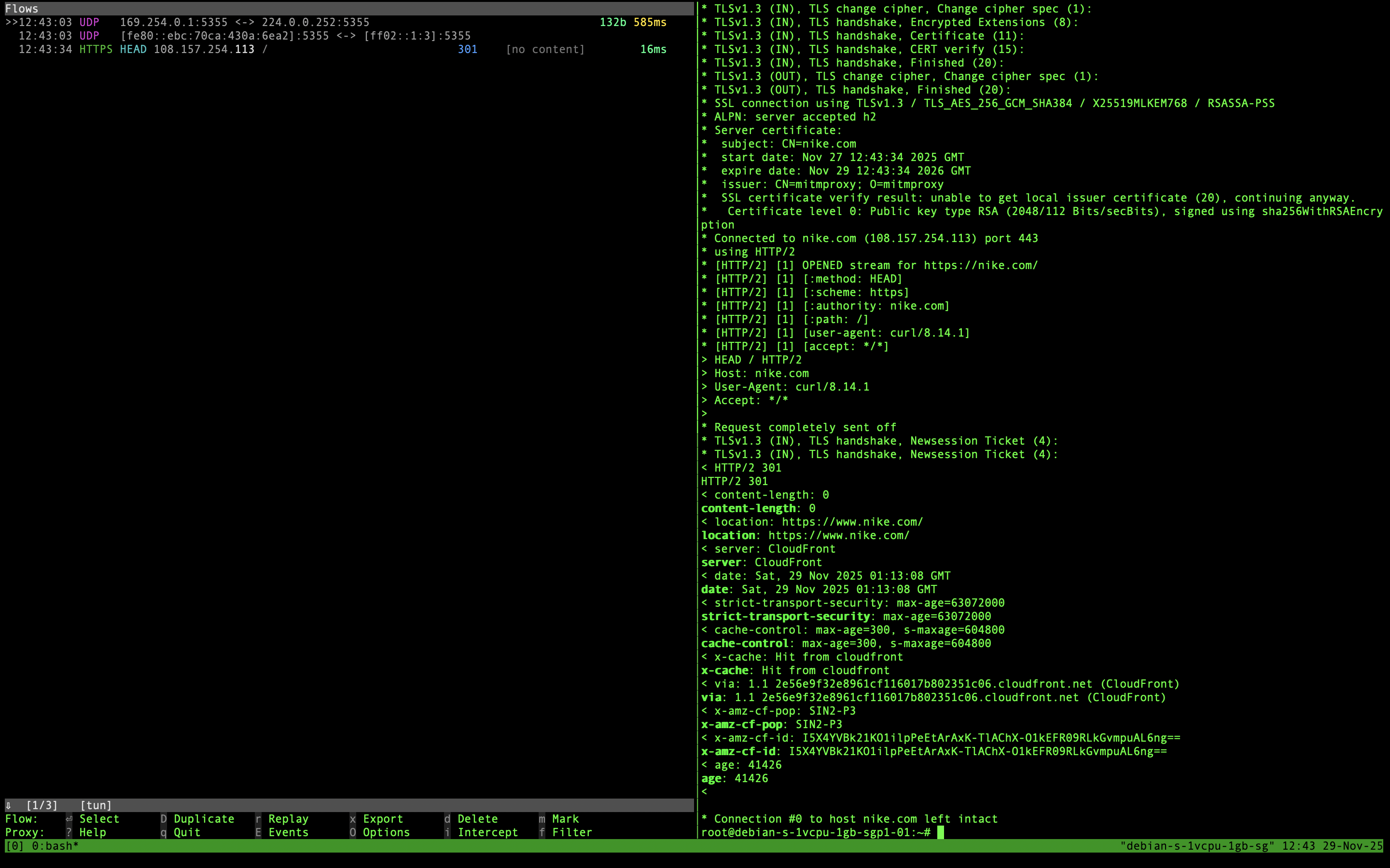 $ curl --socks5 localhost --head https://nike.com -k -v