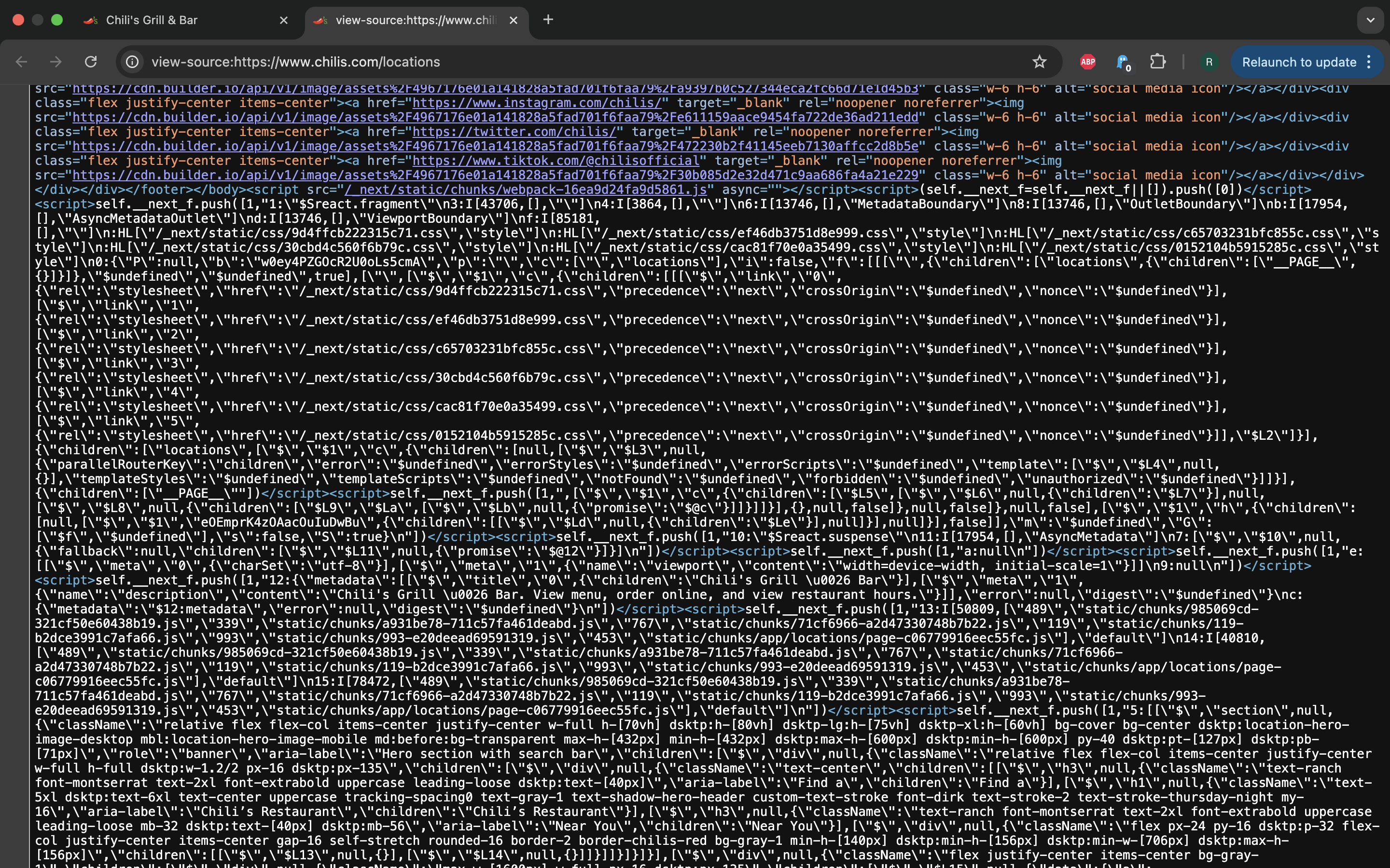 $ njsparser "https://www.chilis.com/locations"